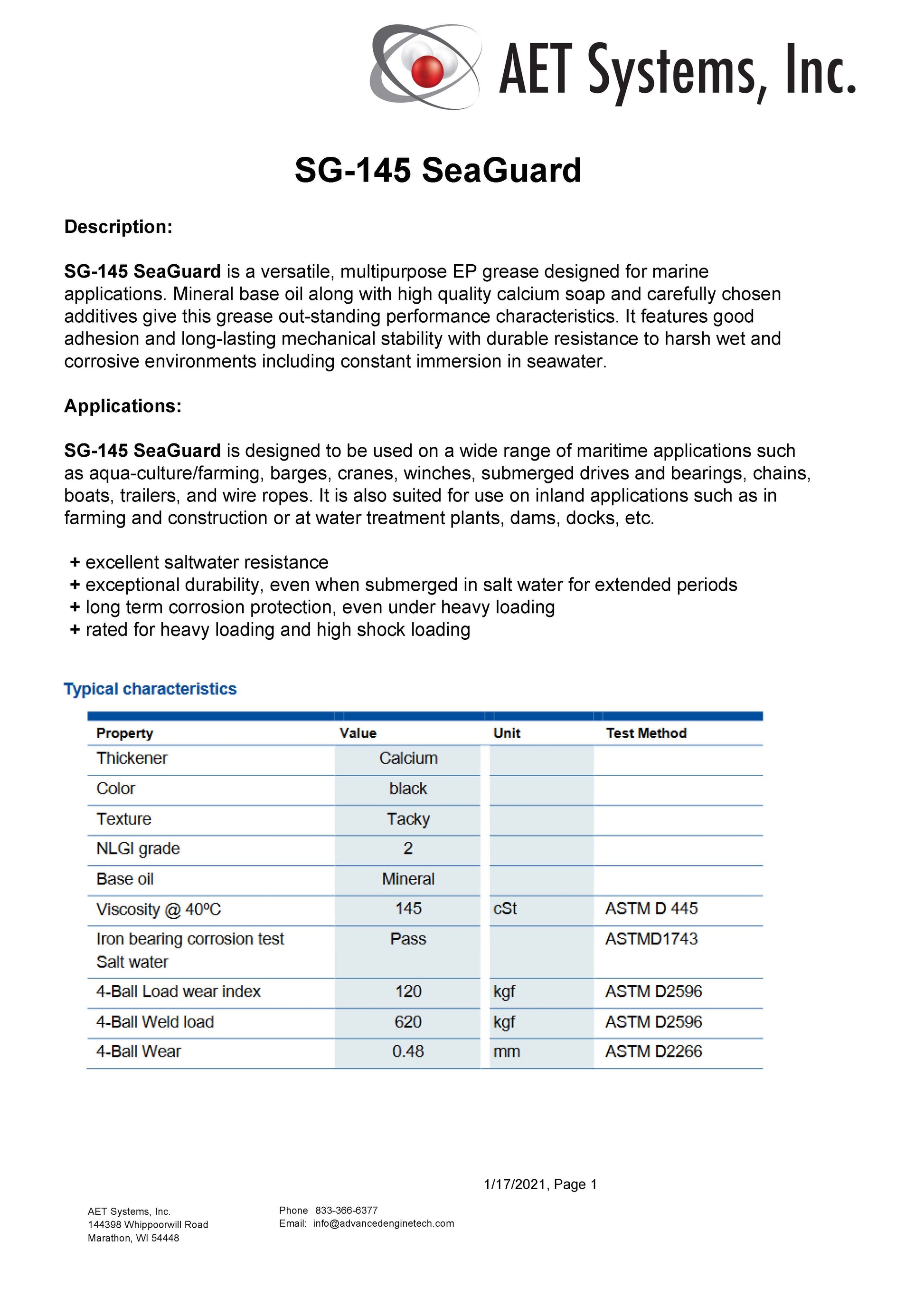 SG-145 has a mineral base oil along with high quality calcium soap and carefully chosen